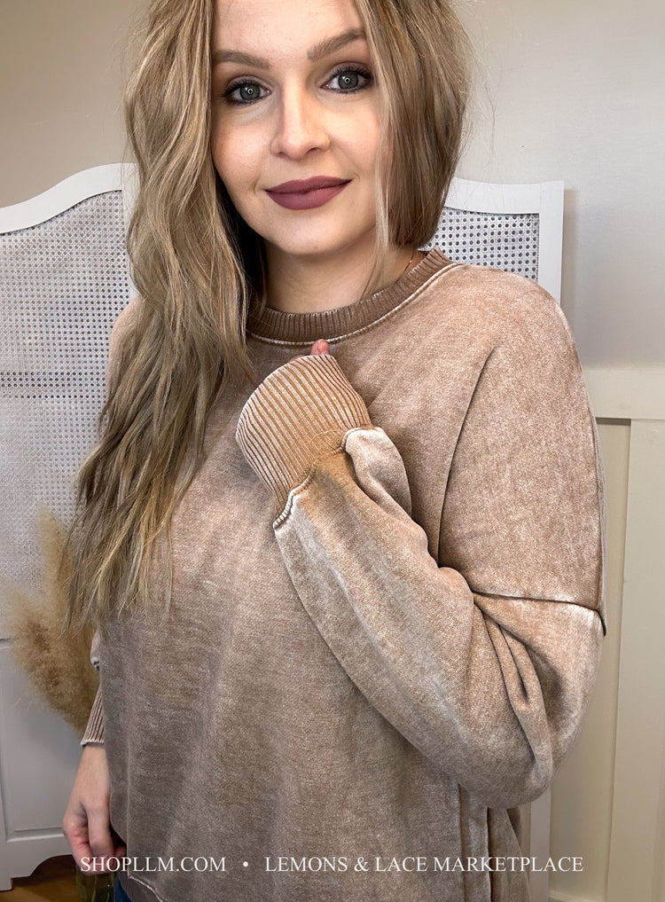 Ash mocha Acid Washed French Terry Pullover