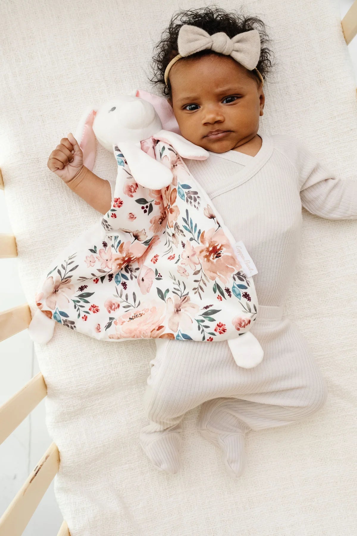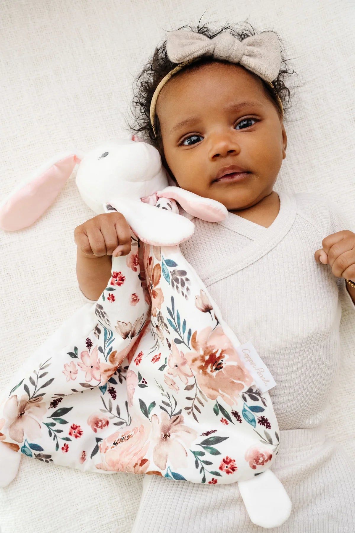Just the right size to take on the go, this snuggly lovey features a squishy head, and a super-soft fabric to comfort baby.