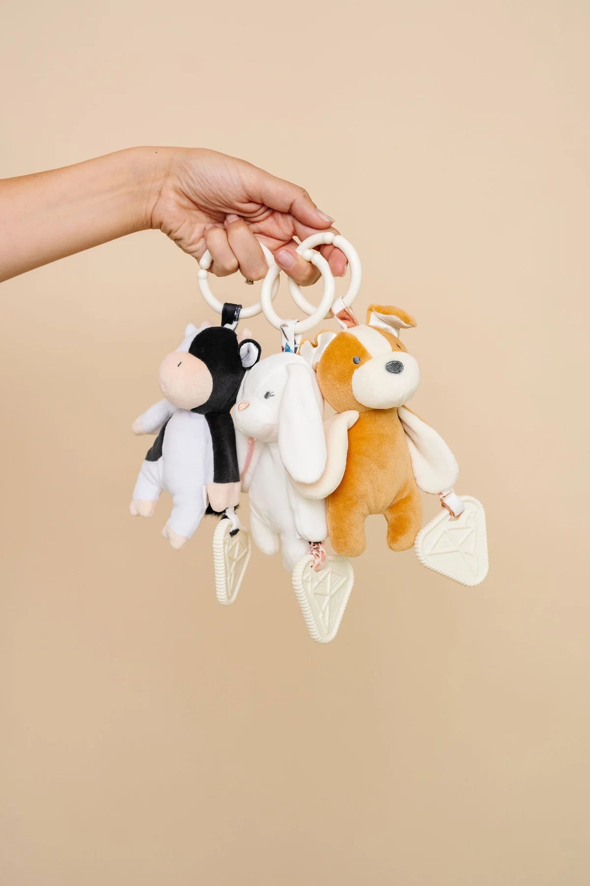 From squeezing to teething, this clip-on plushie offers endless engagement wherever you go. Featuring gentle giggle sound when shaken, this super soft pal also includes a hanging teether and handy travel clip for on-the-go entertainment.