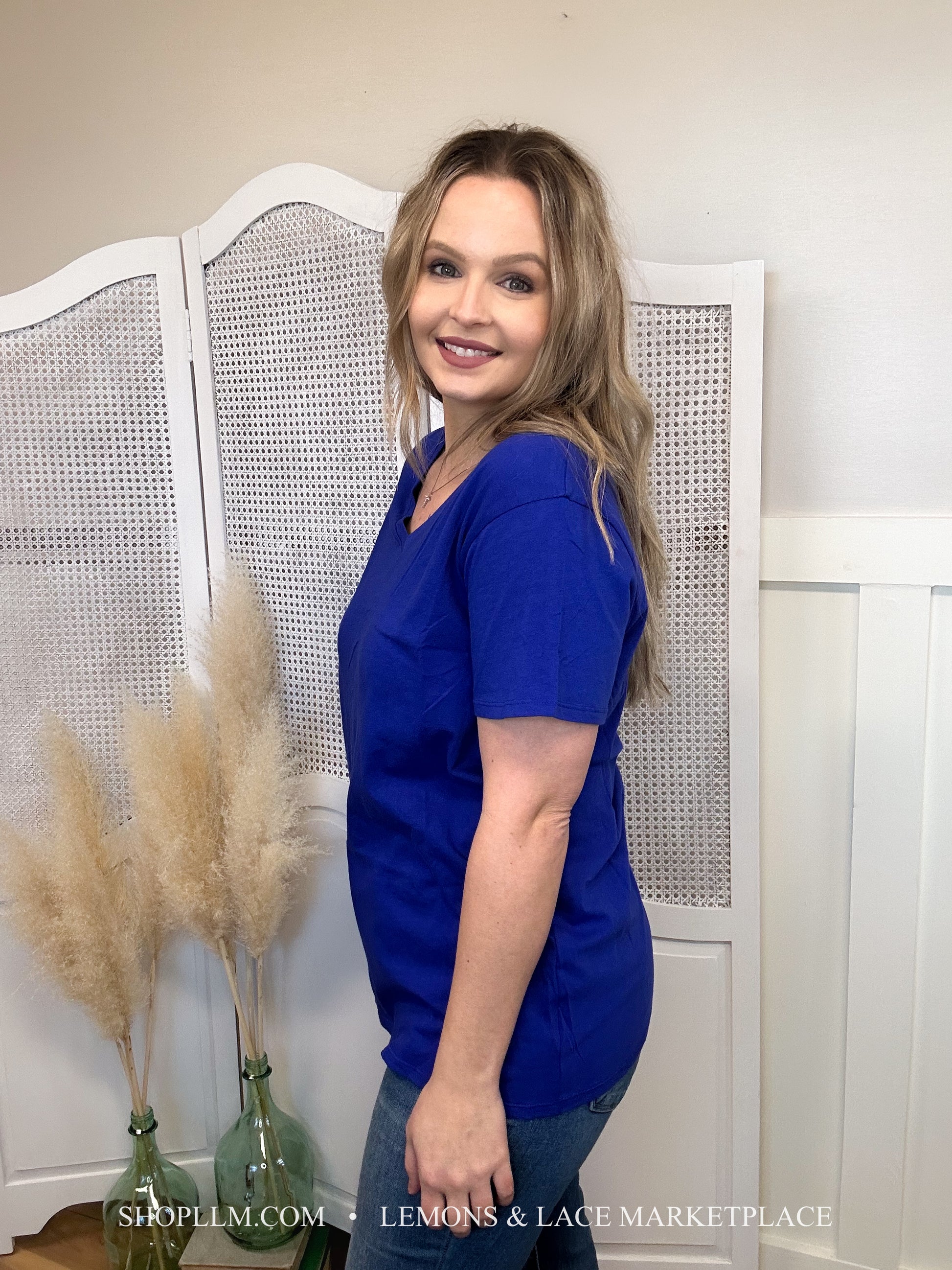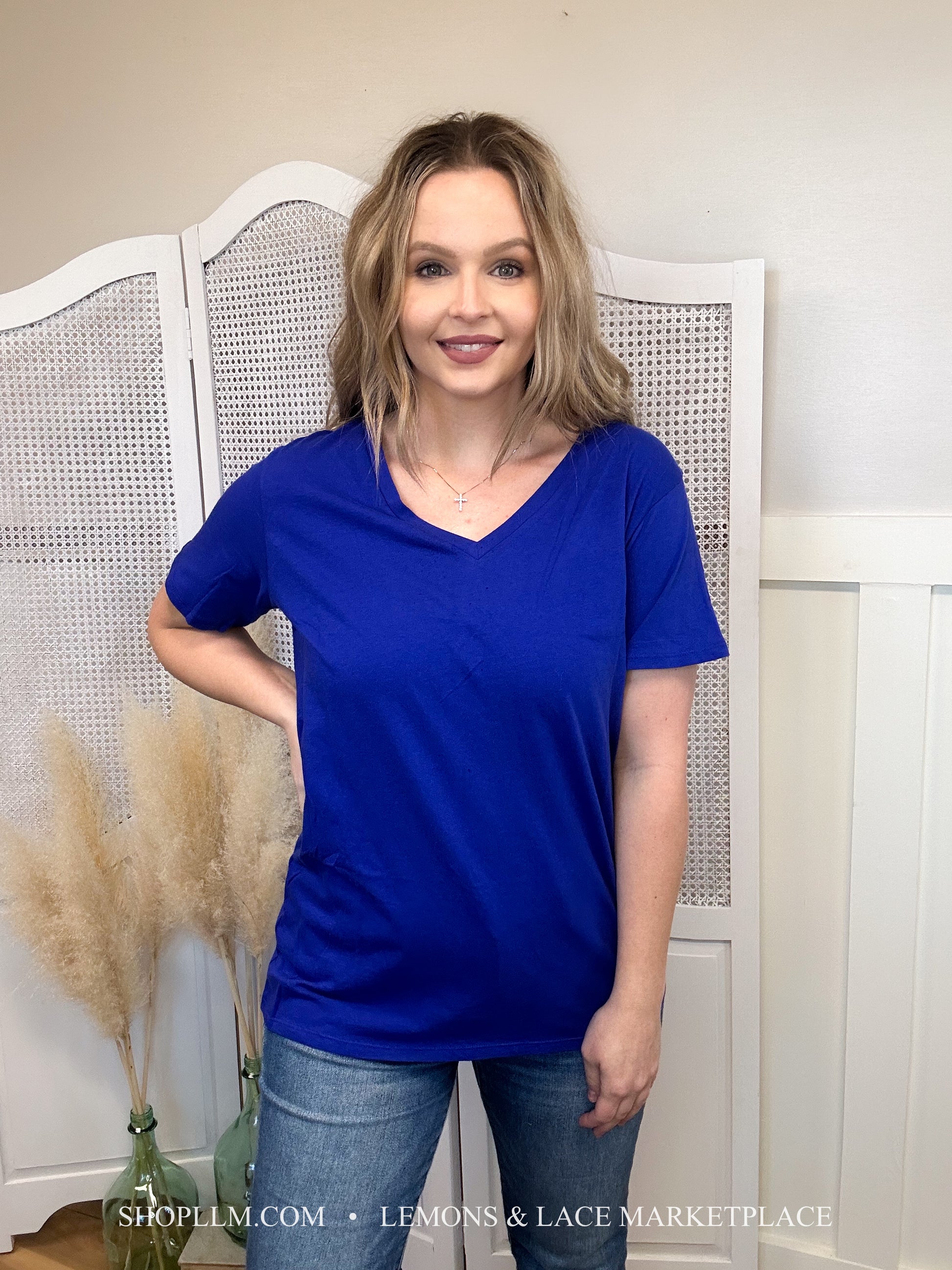 Bright Blue Better Than Basic Boyfriend Tee V-Neck