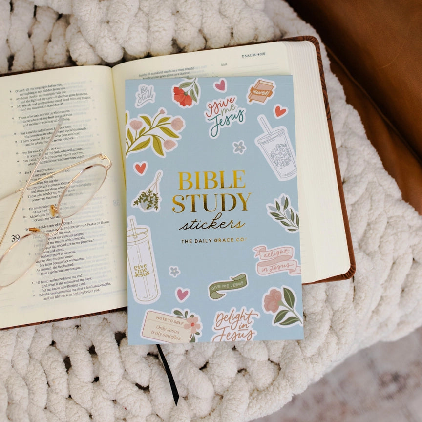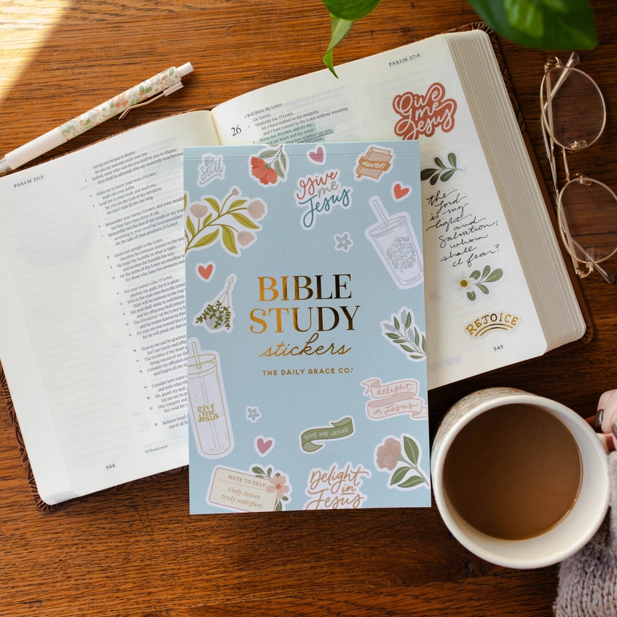 Introducing Bible Study Stickers Give Me Jesus! It's time to decorate your Bibles, Bible studies, journals, planners, and more with over 600 stickers! This sticker book contains a fun collection of over 21 sheets of truth-filled and hand-lettered quotes, along with beautiful illustrations.