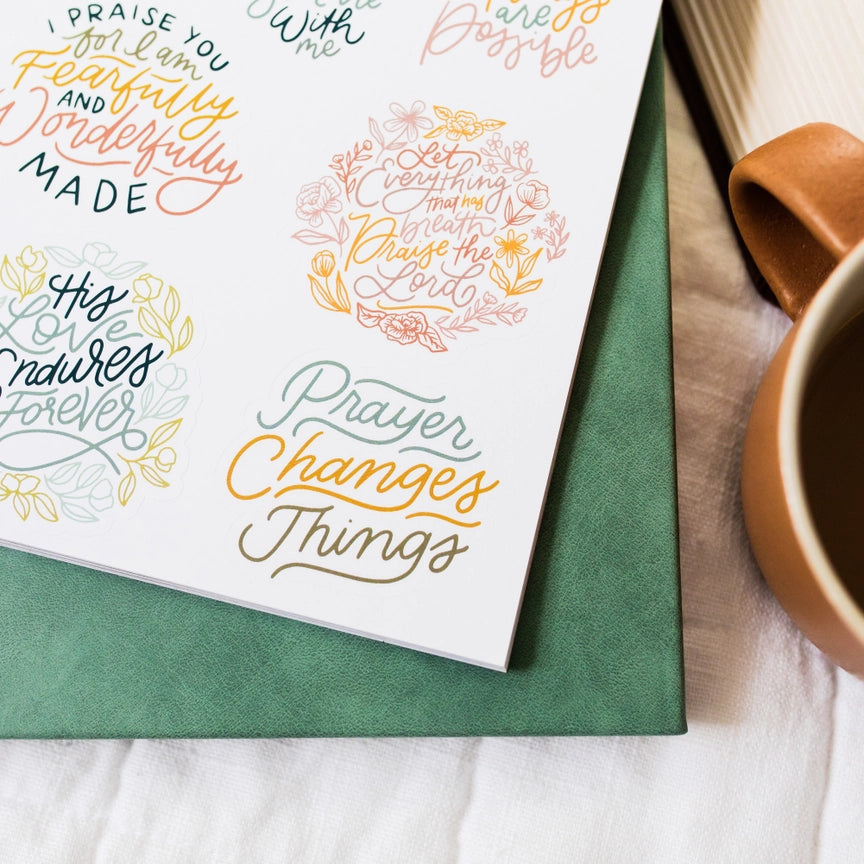 This sticker book contains a fun collection of over 21 sheets of truth-filled and hand-lettered quotes, along with beautiful illustrations. Encouragement is only a sticker away!