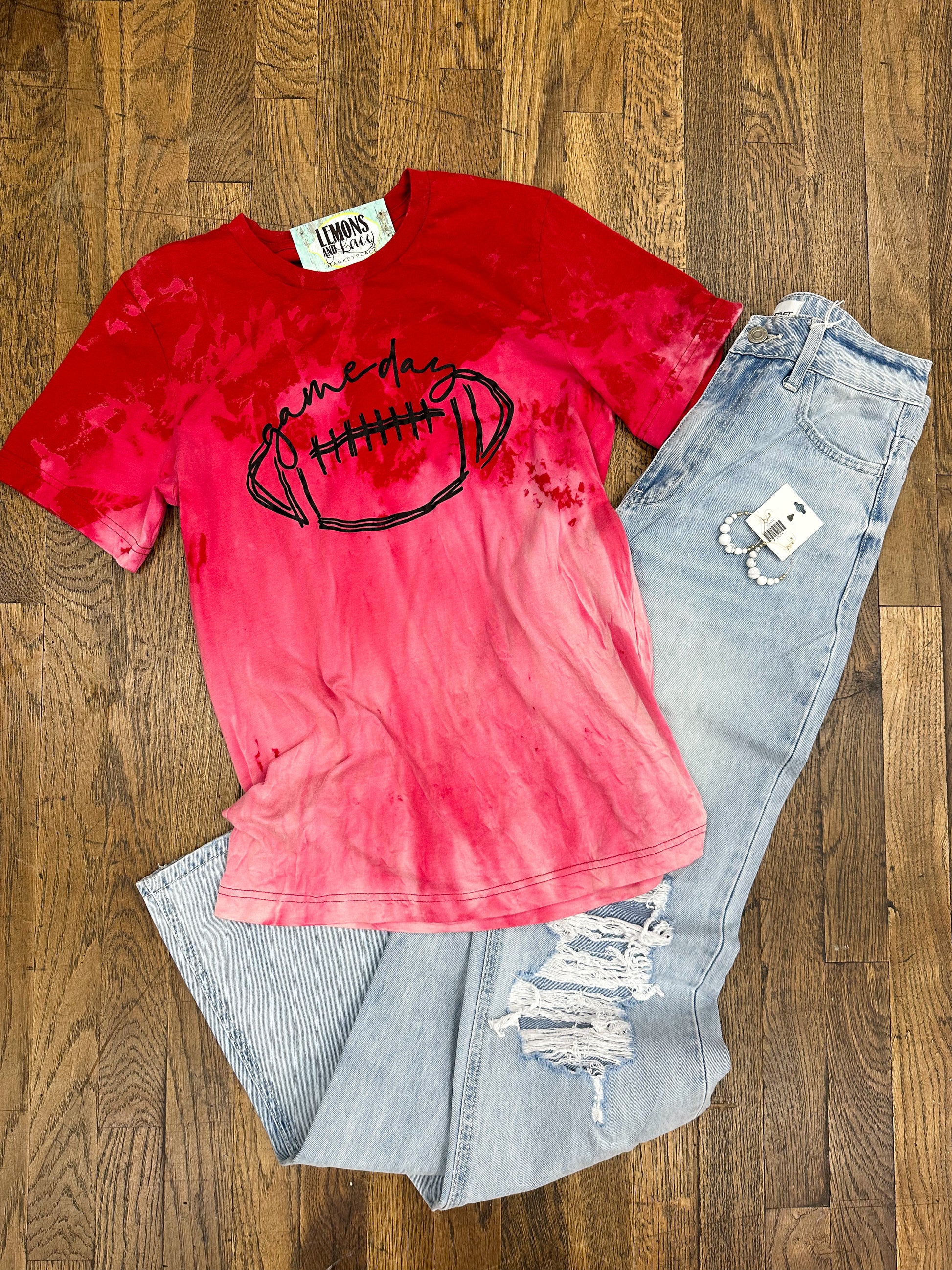 Each shirt has been hand bleached so bleaching will vary on each tee. Not one is alike.