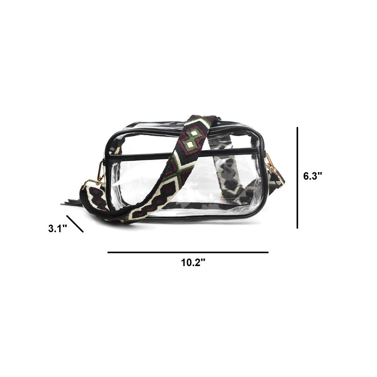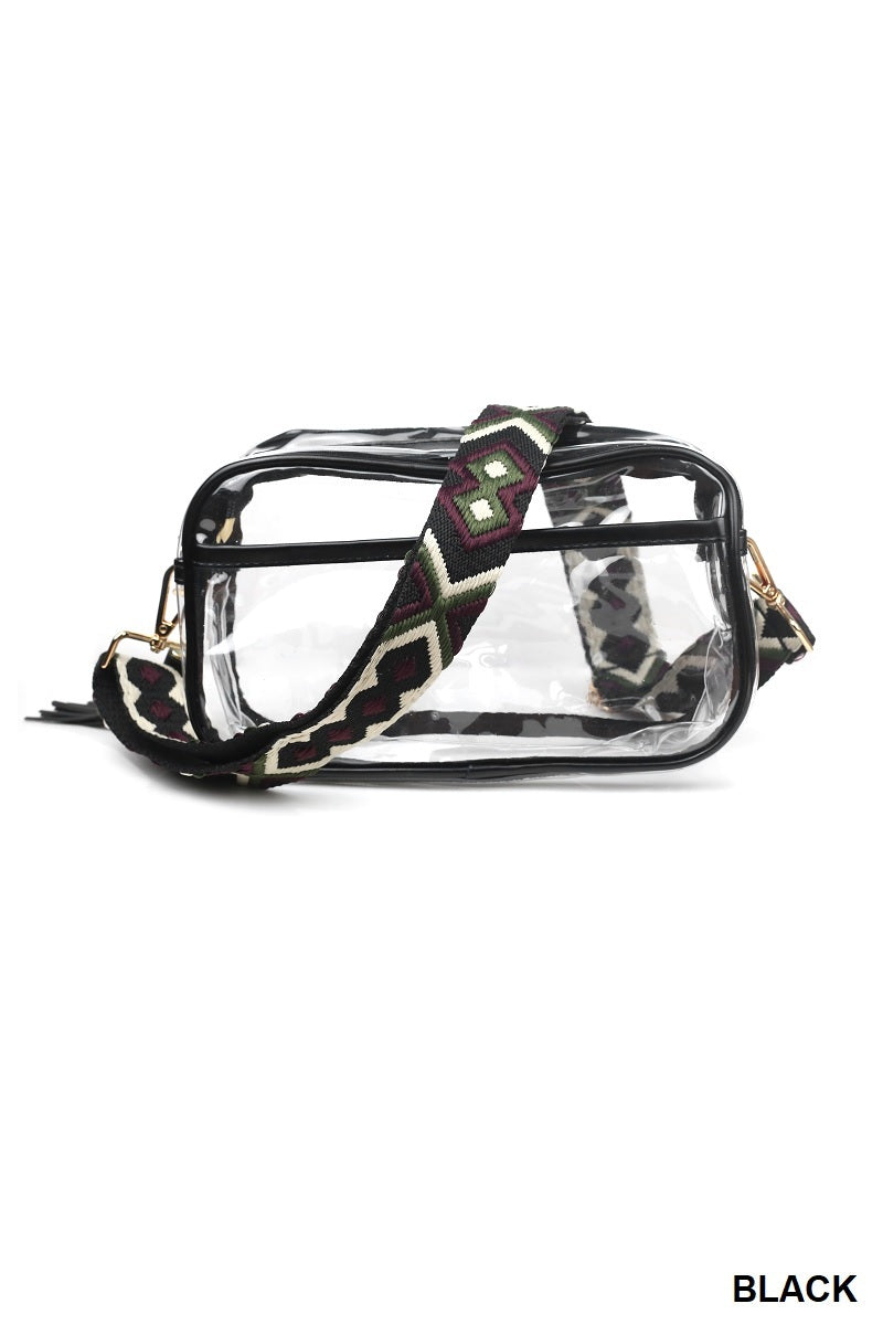 Adorable crossbody purse or bag for stadium required clear bags! Keep the fun straps or change them out with our other guitar straps we have available!