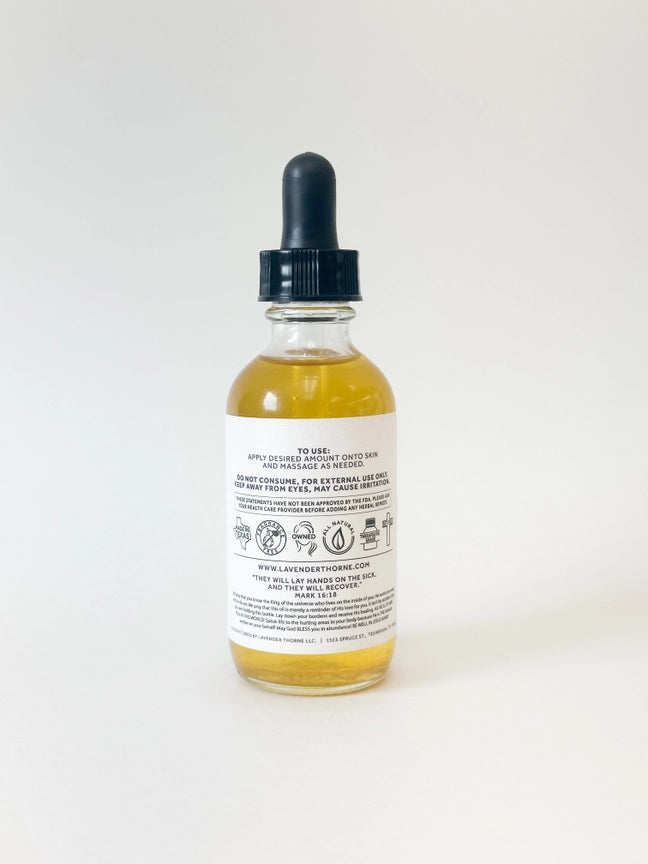Ingredients: Organic Avocado Oil, Organic Vitamin E, Wintergreen, Copaiba, Peppermint, Roman Chamomile, Clove, Lavender, Cayenne, Helichrysum, Ginger, and Turmeric (Therapeutic-Grade Essential Oils)