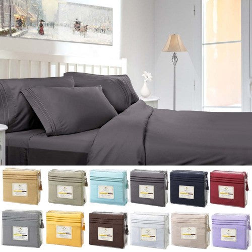 Premier 1800 Collection Deluxe Microfiber 3-Line Bed Sheet Set
