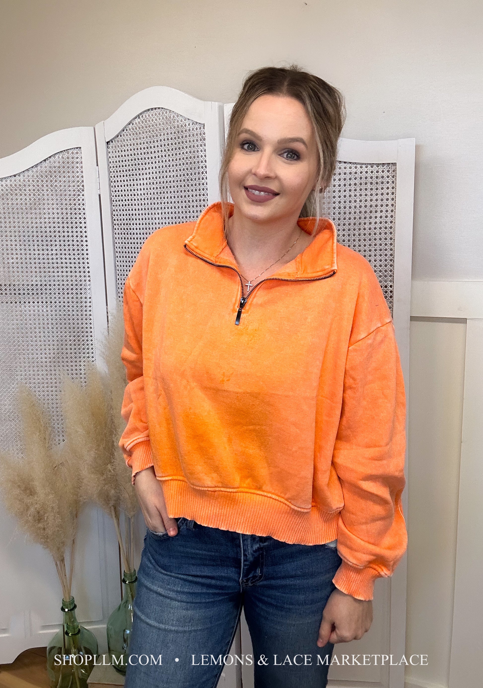 Best seller pullover!! Half zip pullover with acid wash detailing.