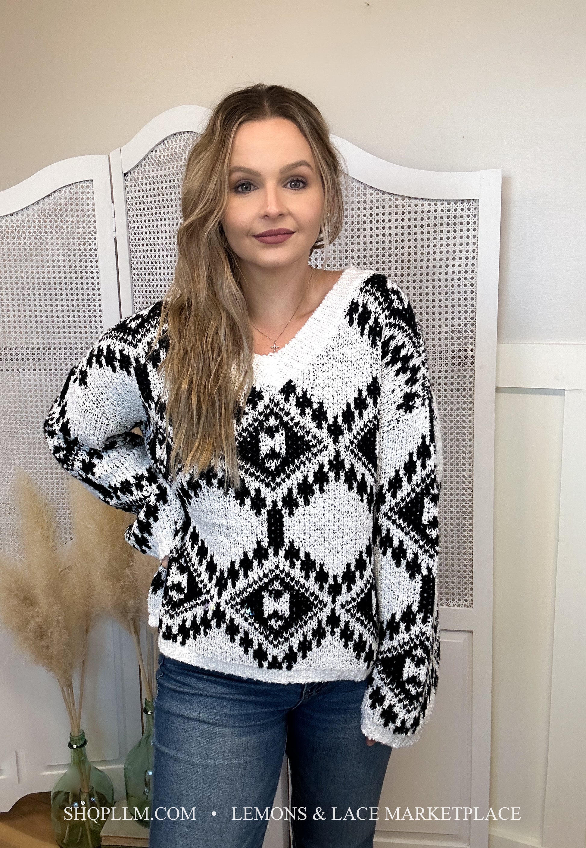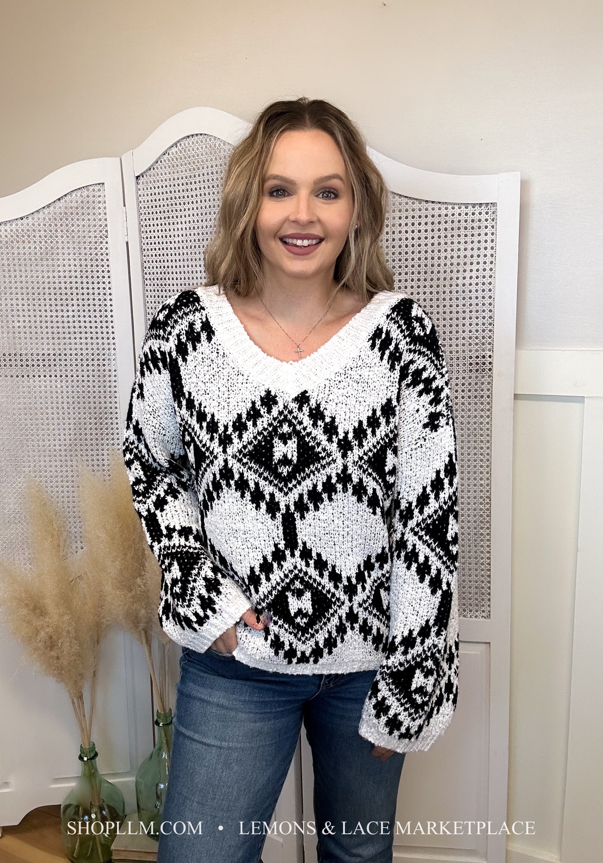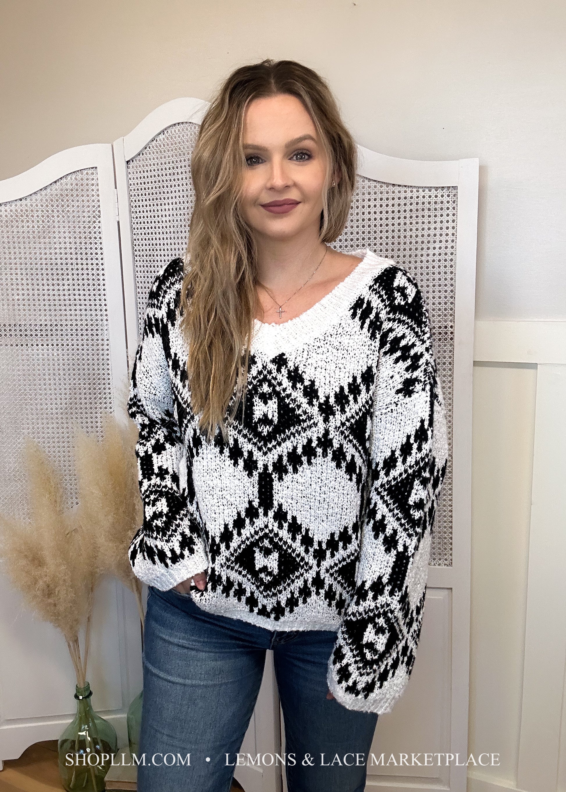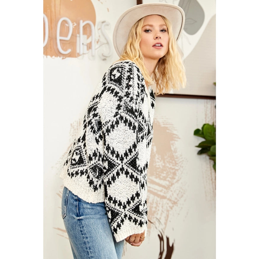 Staci Aztec Pattern Knit Sweater